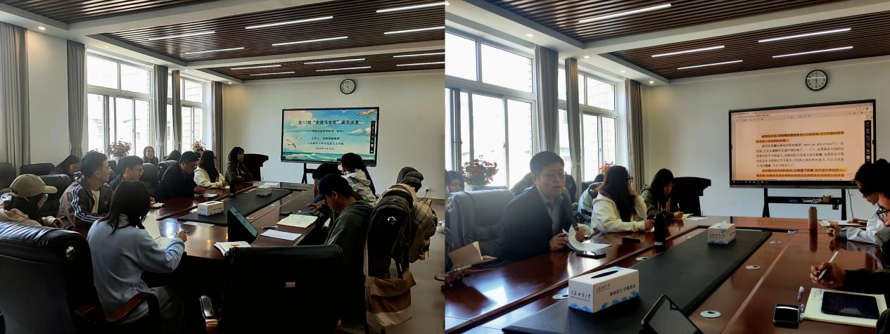 4月24日上午,永利yl23411在北院办公楼S523举办第五十三期“走进马克思”读书沙龙。本次活动由马克思主义公司副经理张海滨副教授主讲,永利yl234112024级、2025级研究生参加了本次活动。
